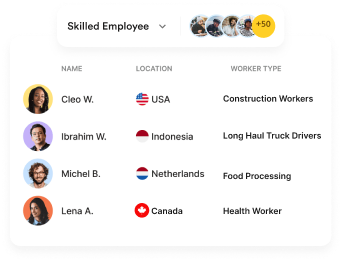 Facing a skills gap in your home country? We can help you source and hire highly skilled professionals for critical roles, such as truck drivers, construction workers, and healthcare workers, even if they are not currently located within your immediate area.